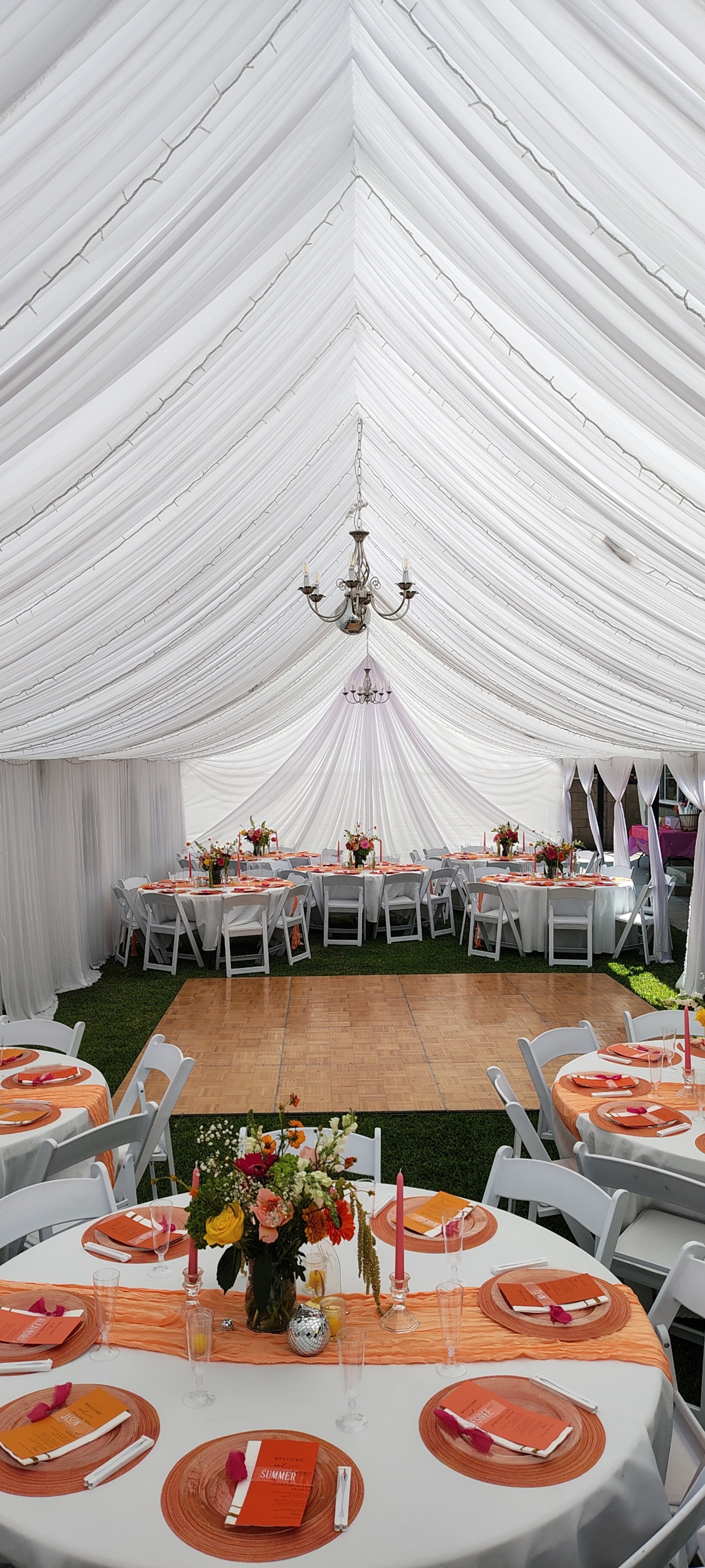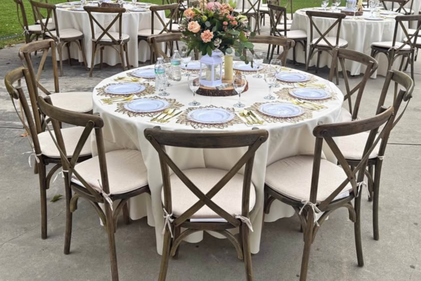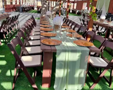 ponchospartyrentals is able to professionally set up. install and breakdown all tables ,chairs and linens for an additional labor fee.